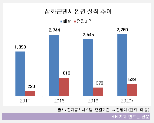 에프엔가이드에 따르면 삼화콘덴서의 올해 예상 매출액은 2760억 원, 영업이익은 529억 원이다. 지난해에 비해 매출은 8.4%, 영업이익은 41.8%나 증가한 수치다.
