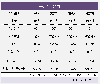 매출은 3분기에 7,9%, 4분기에 11.5% 증가하고 영업이익은 3분기에 31.8%, 4분기에 630% 늘어날 것으로 분석됐다.