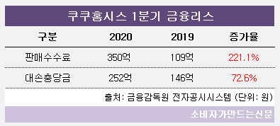 쿠쿠홈시스 1분기 판매수수료는 350억 원으로 2019년 109억 원에서 221.1% 증가했다. 대손충당금은 252억 원으로 같은기간 146억 원에서 72.6% 늘어났다.