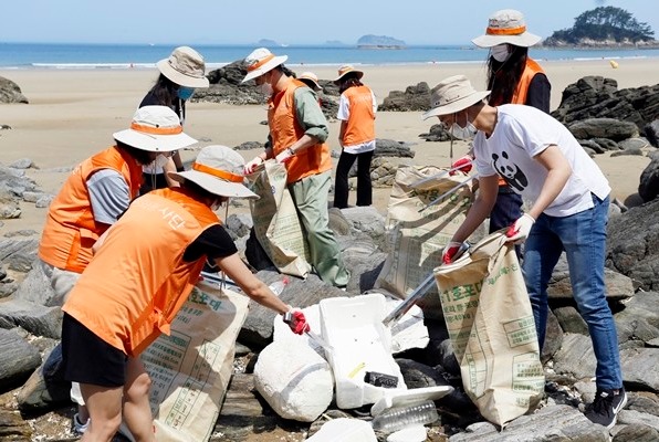 봉사단은 학암포 인근 해안 2㎞ 일대의 플라스틱, 폐그물, 폐비닐 등 해안 쓰레기를 수거했다.