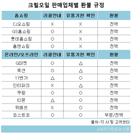 하지만 개인 사업자가 입점해 있는 이들 온라인몰의 특성상 ▶환불 실물여부 ▶유통기한 확인 등은 판매자의 재량에 달려 있는 상황이다.