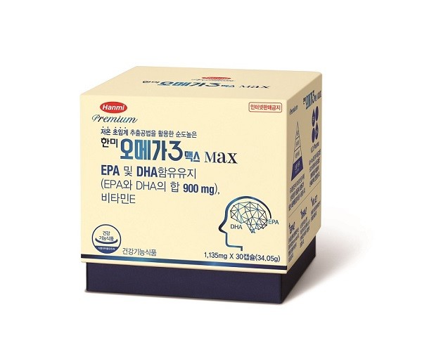 한미 오메가3맥스에는 기억력 개선과 혈중 중성지질 및 혈행 개선, 안구 건조개선 등에 도움을 주는 EPA∙DHA가 900mg 함유돼 한 알 만으로 일일 권장량을 충족할 수 있다.