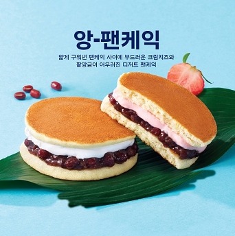 이 제품은 얇고 촉촉하게 구운 팬케이크 사이에 크림치즈와 팥앙금을 풍성하게 넣은 디저트다.