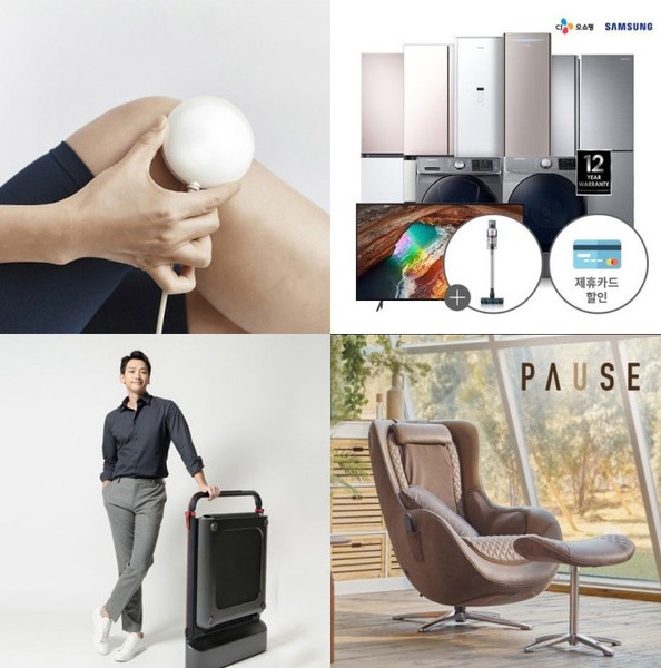 오후 2시 55분에는 ‘삼성전자 묶음렌탈’ 상품이 방송된다. 건조기, 세탁기, 에어컨, 냉장고 등 삼성전자의 대표 가전제품 10여 종 중 필요한 제품을 골라서 이용할 수 있다.
