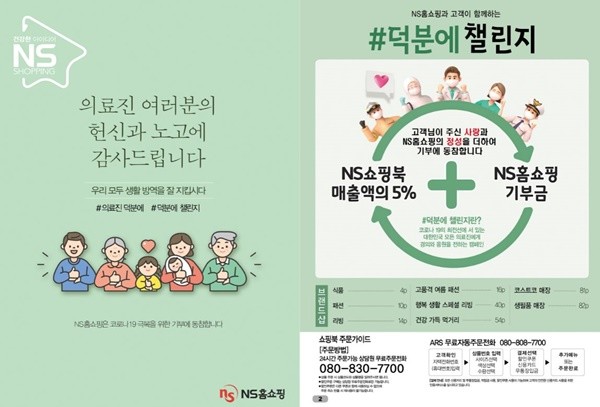 NS홈쇼핑은 상품 소개 및 광고로 인기가 높은 쇼핑북 표지와 첫 페이지를 할애해 코로나19 극복을 위해 헌신하는 의료진에게 감사의 마음을 전하는 ‘덕분에 챌린지’에 동참하기로 했다.