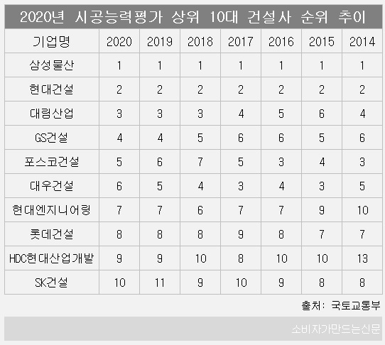 삼성물산, 시공능력평가 7년 연속 1위...SK건설, 10위권 진입