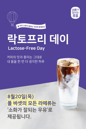 폴 바셋 담당자는 “평소 유당불내증이 있어 라떼를 비롯해 우유가 들어간 음료를 즐기지 못했던 분들이 이번 기회에 다양한 메뉴를 경험할 수 있길 바란다”며 “소화가 잘되는 우유로 변경하면 추가 비용 없이도 배 아프지 않고, 커피 맛은 그대로 즐길 수 있다”고 말했다.