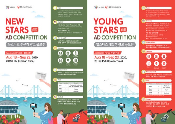 공모전은 ▶국내외 일반(마케팅 홍보 캠페인 실무 5년차 이하)의 전문가를 대상으로 하는 ‘뉴스타즈 전문가 광고 공모전’ ▶국내외 대학생(대학원생 포함 박사과정 제외)대상의 ‘영스타즈 대학생 광고 공모전’으로 나뉘어 실시된다.