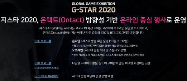 일반 이용자를 대상으로 한 온라인 BTC(게임 전시)에 참여하는 기업에는 현장 무대를 무상으로 이용할 수 있는 기회가 제공된다. 참관객 입장 여부는 코로나 확산 추이에 따른 방역 당국 지침을 검토해 추후 결정될 예정이다.