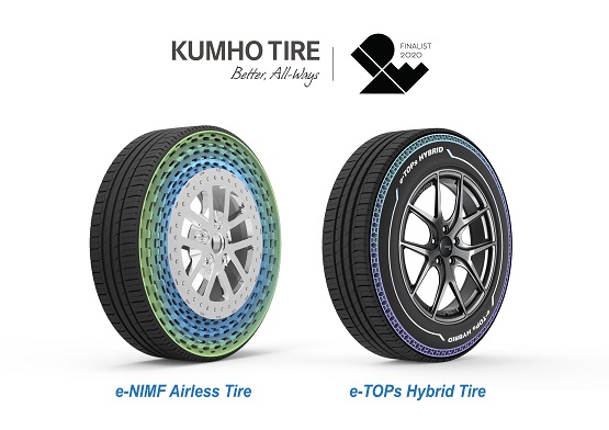 금호타이어가 수상한 제품은 미래 지향적 기술력을 담은 컨셉타이어인 에어리스 타이어 e-NIMF(eco-friendly, No Inflation, Maintenance Free tire)와 하이브리드 타이어 e-TOPs(eco-friendly, Topology Optimized, and Punctureless tire)이다. 금호타이어는 특히 친환경, 자율주행 자동차가 주도적으로 개발되고 있는 미래 자동차 시장을 겨냥해 기존의 타이어 성능은 최대로 유지하면서 주행 중 타이어로 인해 발생가능한 사고를 방지하기 위한 타이어 연구/개발을 추진 중이다.