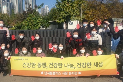 동국제약 임직원들은 매월 정기적으로 사랑의 연탄나눔, 사랑의 빵 나눔 등 자신이 희망하는 사회공헌활동을 선택해 인사돌플러스 사랑봉사단으로 활동해 왔다. 코로나19 이후로는 3밀(밀집, 밀접, 밀폐)을 피해야하는 상황으로 주로 야외 봉사 활동을 진행하고 있다. 오는 11월 13일에는 강남구자원봉사센터에서 주관하는 사랑의 김장나눔 행사에 함께할 예정이다.