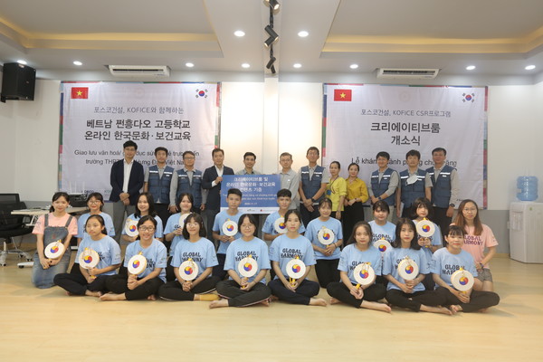 한국문화 교육 콘텐츠는 지난 3월에 선발된 포스코건설 대학생봉사단인 해피빌더가 기획부터 촬영까지 맡아 제작한 19편의 영상이다. 앞으로 쩐흥다오 고등학교 학생들은 크리에이티브룸에서 유튜브 영상으로 한국문화를 체험하게 된다.