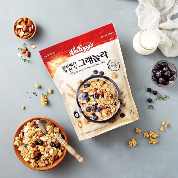 농심켈로그에 따르면 블루베리 아몬드 그래놀라는 귀리, 쌀, 통밀, 옥수수 등을 뭉친 통곡물에 블루베리와 아몬드를 자연 모습 그대로 곁들인 제품으로 새콤하고 고소한 맛이 조화를 이룬다. 바삭한 쌀 푸레이크에도 꿀과 블루베리를 입혀 상큼하고 달콤한 과일의 맛을 한층 더 높였다.