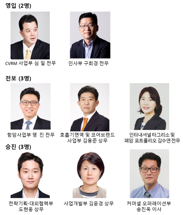 그간 항암사업부를 맡아 온 김수연 전무는 인터내셔널 타그리소 및 폐암 포트폴리오 총괄로 전보하고 호흡기면역사업부를 이끌어 온 명진 전무가 항암사업부를 맡는다. 커머셜 오퍼레이션 부서를 총괄해 온 김용준 상무는 호흡기면역사업부와 코어브랜드를 통합한 신규 조직을 이끌게 된다.