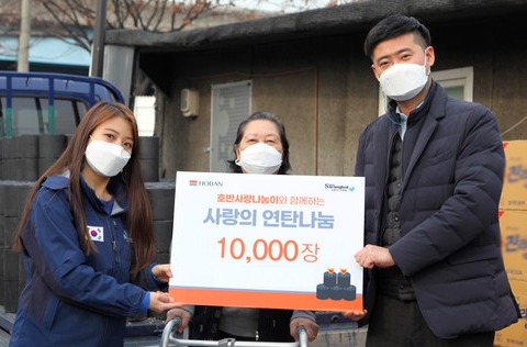 호반사랑나눔이는 지난 주말 광명시 뚝방촌과 성남시 화훼마을에 연탄 총 1만장과 라면 등 생필품을 전달했다. 이날 전달된 물품은 1500만 원 상당으로, 호반건설 등 호반그룹 임직원들의 기부금으로 마련됐다.