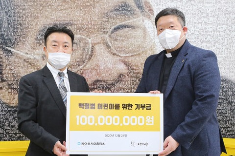 이번 기부금 전달은 동아쏘시오홀딩스가 나눔 문화 동참과 확산에 기여해 사회적 가치를 창출하고 백혈병을 앓고 있는 어린이들이 암을 이겨내 건강한 일상을 되찾는 것을 돕고자 마련됐다.