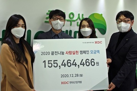 HDC현대산업개발은 2015년부터 임직원이 자발적으로 참여하는 '끝전나눔 사랑실천 캠페인'을 통해 매월 급여 실수령액 중 1만 원 미만의 잔액을 모금하고 있다. 회사는 임직원 기부 금액과 동일한 액수를 더해 올해 총 1억5500여만 원의 정성을 마련했다.
