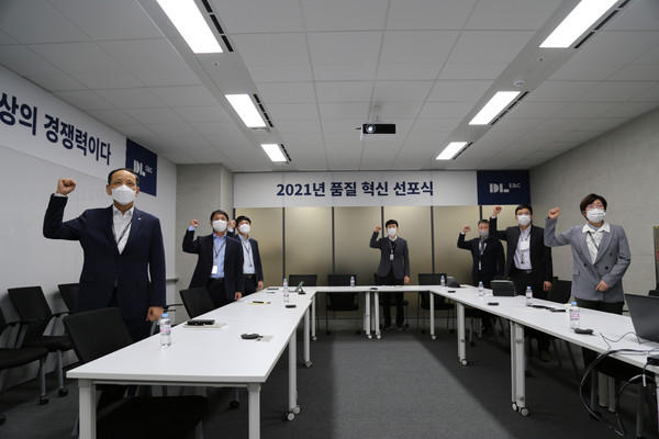 6일 DL이앤씨는 품질혁신 선포식을 진행했다고 밝혔다. 선포식 행사는 디타워 돈의문 본사 임직원들과 전국 100여 개 현장 품질 담당자들이 참여한 가운데 화상회의를 통해 비대면으로 진행됐다.