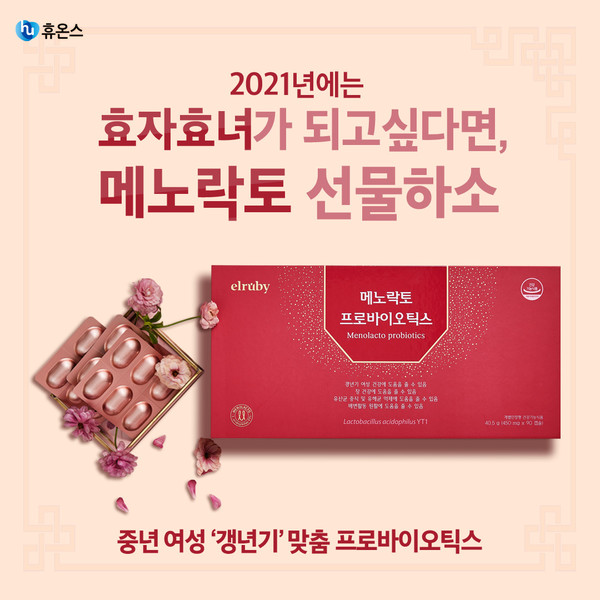 휴온스(대표 엄기안)는 신축년 설 명절을 맞아 갱년기 유산균 '엘루비 메노락토 프로바이오틱스' 특별 프로모션을 실시한다고 21일 밝혔다.