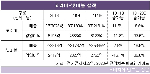 2019년 전년에 비해 영업이익이 줄었던 코웨이와 넷마블은 지난해 매출과 영업이익이 모두 증가할 것으로 전망된다.