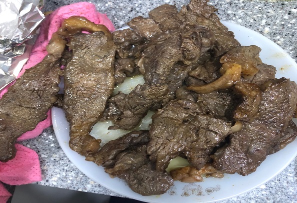 조리를 위해 포장을 뜯어보니 고기 상태가 엉망이었다. 등심은 쪼가리에 불과했고 심지도 여럿 들어있었다.