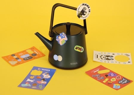 엄지작가는 위니아 슬로건인 ‘MAKE IT EASY’와 케이팝 등 해외 소비자도 즐길 수 있는 한국적 아이템을 소재로 캐릭터·캘리그라피 스티커를 구현했다. 이 스티커를 전기주전자에 붙여 사용자는 자신만의 디자인으로 꾸밀 수 있다는 설명이다.