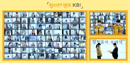 청소년의 멘토 KB! 학습멘토링 사업은 학습교육 및 문화체험 활동을 지원하는 프로그램이다. 앞으로 1년 간 160명의 대학생 봉사단이 320명의 중학생을 대상으로 화상 교육 시스템을 활용해 주 2회 학습멘토링을 진행할 예정이다.