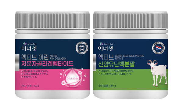 '이너셋 액티브 어린 저분자콜라겐펩타이드'는 콜라겐 흡수의 핵심인 초저분자 콜라겐 500Da에 체내에서 콜라겐 합성을 도와주는 비타민C를 배합한 분말 형태의 제품이다.