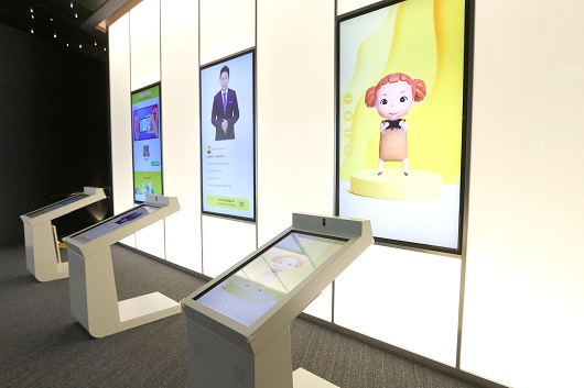 첫 번째 키오스크에서는 아바타가 등장하는 AI 가상상담서비스를 경험할 수 있다. 아바타는 ▲KB신사옥에 대한 소개와 KB국민은행의 인공지능 방향 소개 ▲금융에 특화한 한글 자연어 학습 모델인 KB-ALBERT 안내 ▲키보드로 입력한 문장을 목소리로 읽어주는 기능을 제공한다.
