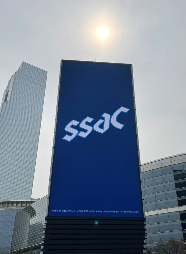 대형 전광판에는 SSAC(싹)이라는 글자만 화면 노이즈처럼 흔들린다. 이어 글자가 'CASS(카스)'로 바뀌며 영상이 카스 광고임을 짐작하게 한다. 전광판에는 SSAC(싹)과 CASS(카스) 두 단어 외의 다른 내용이 없어 호기심을 자극한다.