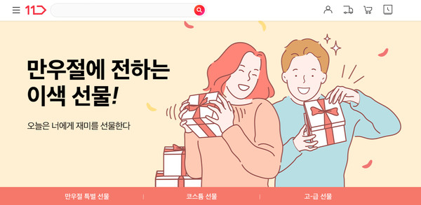 11번가는 만우절을 앞두고 ‘선물하기’ 전문관에서 ‘만우절’ 기획전을 열어 상품기획자(MD)가 직접 추천하는 제품부터 가격대별 인기 상품까지 판매한다. 이들 상품은 11번가 ‘선물하기’ 서비스를 통해 휴대폰 문자 메시지나 카카오톡으로 상대방에게 전달, 웃음을 선물할 수 있다.