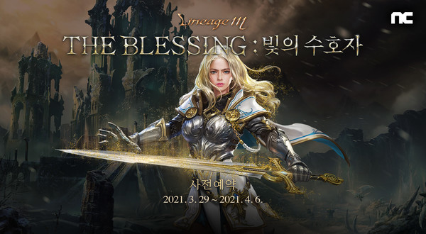 'THE BLESSING: 빛의 수호자'는 신성검사 클래스(Class, 직업)를 대폭 상향하는 업데이트다. 이용자는 오는 4월 6일까지 리니지M 공식 홈페이지에서 사전예약에 참여할 수 있다.
