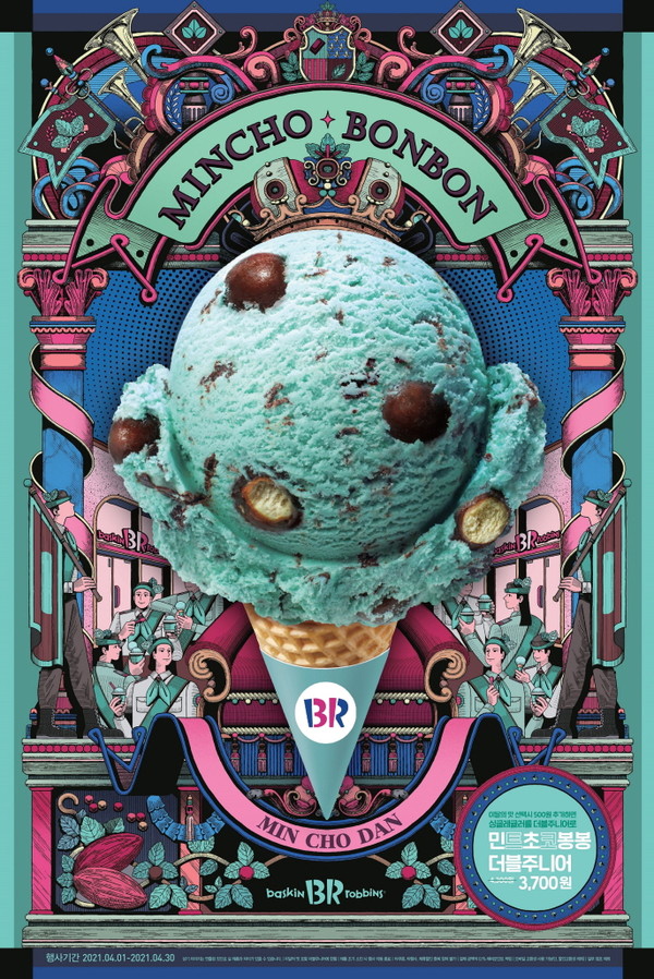 배스킨라빈스는 민트 초코 매니아를 공략한 이달의 케이크 '민트 초코 킹덤'도 선보인다. 민트 초콜릿 칩과 민트 초코 봉봉을 포함한 여섯 가지 아이스크림으로 구성됐다. 민트를 원료로 만든 토핑들을 케이크 위에 올렸다.