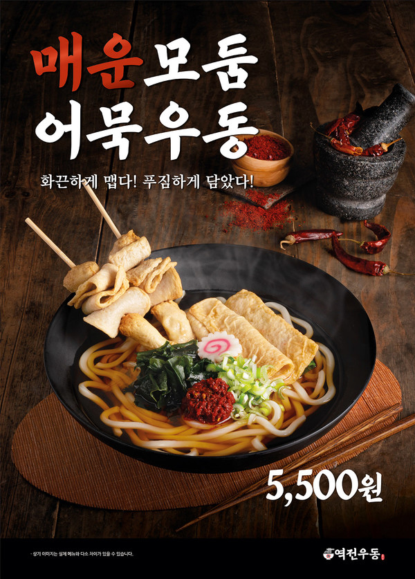 매운모둠어묵우동과 마라어묵은 전국 역전우동 매장에서 만나볼 수 있다. 가격은 각각 5500원, 1500원이다.