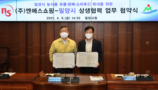 NS홈쇼핑과 밀양시는 이 자리에서 밀양 농식품의 유통확대와 농촌 삶의 질 향상을 위해 상생협력의 뜻을 모았다.