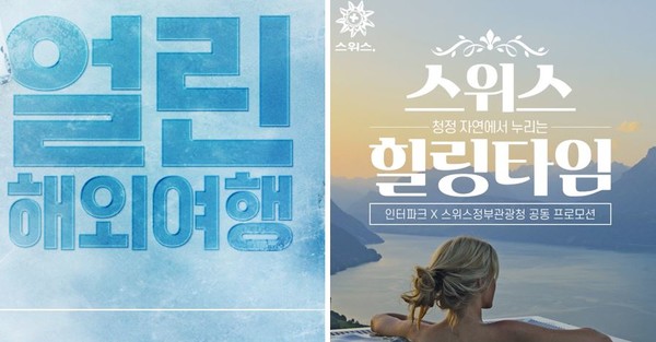 장거리 패키지는 청정자연 여행지로 손꼽히는 스위스 상품을 준비했다. 스위스정부관광청과 손잡고 ‘스위스 힐링타임’ 기획전을 마련, 인터파크투어 공식 홈페이지 및 모바일앱을 통해 고품격 컨셉의 스위스 9일 패키지를 판매한다.