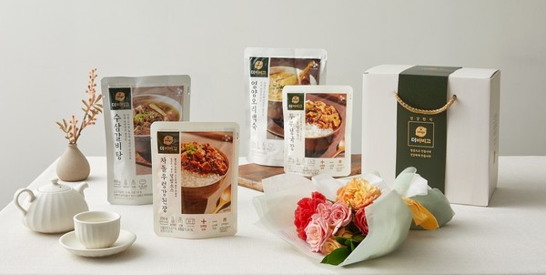 메인 선물은 '한뿌리 흑삼대보'와 건강간편식 '더비비고' 4종(수삼갈비탕, 영양오리백숙, 차돌우렁강된장 덮밥소스, 두부청국장 덮밥소스)이며 카네이션 꽃다발을 세트로 구성했다. 카네이션은 특수 제작된 박스에 포장해 배송된다.