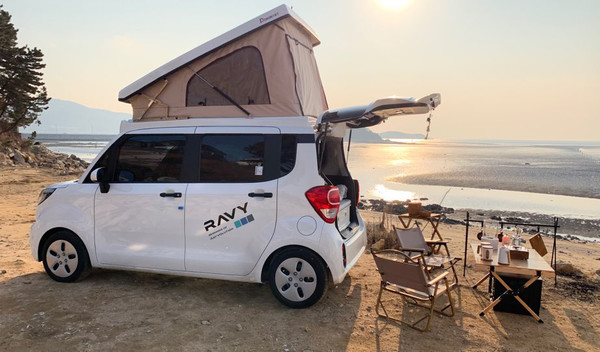 행사 차량은 캠핑카 개발·렌탈기업 ‘다온티앤티’에서 출시된 기아 ‘레이’ 기반의 2인승 캠핑카 ‘레비’로 2층 팝업텐트가 기본 장착돼있고, 접이식 침상매트, 변환식 수전 등이 장착돼 소규모 가족이나 연인끼리의 차박에 최적화된 미니 캠핑카다.