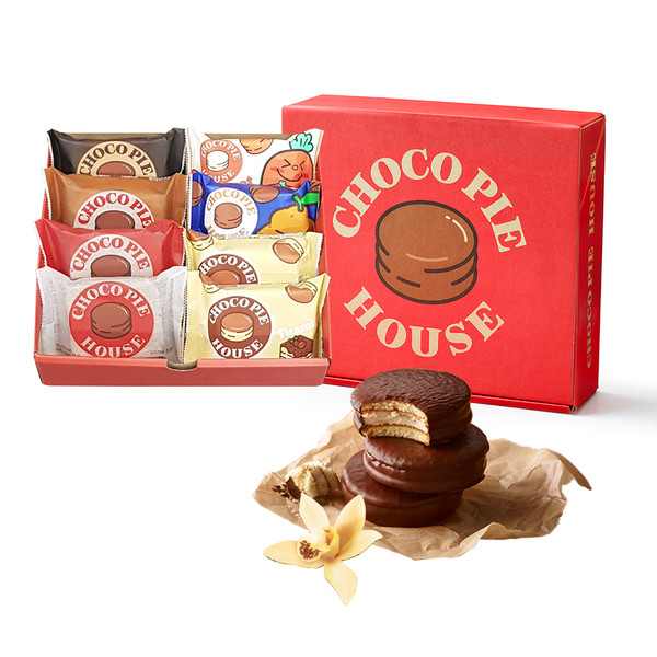 초코파이하우스 선물세트는 디저트 초코파이 오리지널, 레드벨벳, 카라멜솔트, 카카오 등 시그니처 플레이버와 최근 2030세대에서 조명 받는 당근케이크, 티라미수, 제주 한라봉을 한 상자에 담은 제품이다.