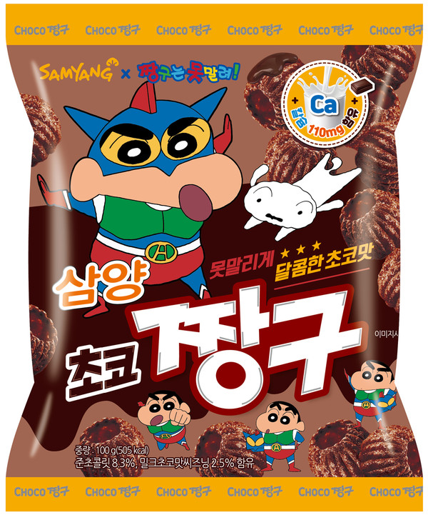 초코짱구는 짱구 브랜드에서 선보이는 초코 스낵이다. 칼슘이 110mg 함유돼 있으며 과자 표면에 코코아분말, 밀크초코 등을 입혀 초콜릿 풍미를 느낄 수 있다. 손가락에 끼우거나 초코짱구 속을 아이스크림으로 채우는 등 먹는 재미를 더할 수 있다.