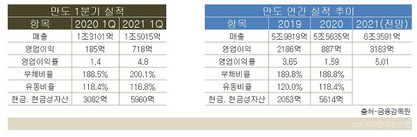 만도 관계자는 “사업을 하다보면 분기별로 부채비율이 조금씩 업다운을 할 수 있다. (증가를 유발한) 특별한 악재는 없었다”면서 “올해 실적 전망도 괜찮을 것이라 본다”고 말했다.