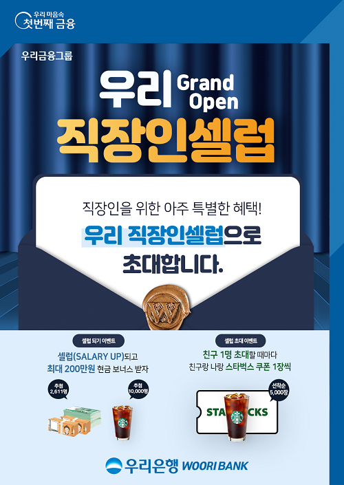 우리은행 관계자는 “우리 직장인 셀럽 페이지 오픈을 통해 직장인 특화 금융서비스 제공은 물론 직장인 고객을 응원하기 위한 이벤트도 마련했다”며 “앞으로도 직장인 고객을 위한 특화상품과 서비스를 지속적으로 확대해 나갈 것”이라고 밝혔다.