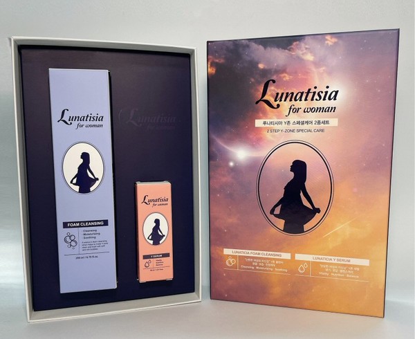 루나티시아 스페셜케어 2종 세트는 2단계에 걸쳐 여성 Y존의 청결과 보습, 탄력, 밸런스케어 등을 관리할 수 있는 제품이다. '루나티시아 폼클렌저'와 '루나티시아 와이 세럼'으로 구성됐다.