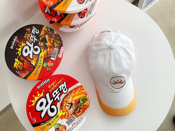굿즈 제작은 한 장의 사진에서 착안했다. 지난해 흰 모자를 쓴 여성이 왕뚜껑을 먹다 챙 끝부분에 국물이 닿아 모자가 물들어 버린 모습이 화제가 됐다. 팔도는 당사자를 찾기 위해 SNS 이벤트를 진행했고 주인공을 만나 제품과 함께 왕뚜껑 모자를 선물했다.