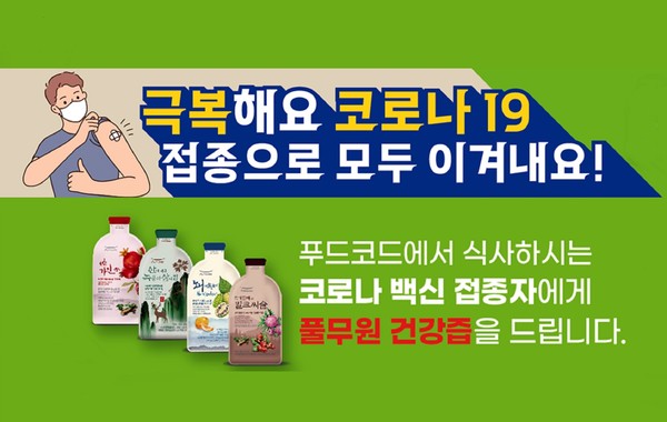 코로나19 백신 접종 고객이 푸드코트에서 메뉴 주문 시 메뉴당 풀무원녹즙 건강즙(석류가인, 산이내린 녹용과 삼의힘, 노니엔클리어, 헛개열매와 밀크씨슬) 1봉을 랜덤으로 제공한다. 메뉴 주문 시 국내 발급 접종 인증서 및 배지를 현장에서 제시하면 된다.