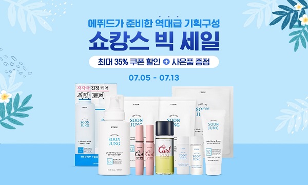이와 더불어 패션 뷰티 빅세일 공통 쿠폰 20%, 에뛰드 브랜드 쿠폰 15% 등 최대 35%의 쿠폰 추가 할인 혜택을 받을 수 있고, 에뛰드 제품 5만 원 이상 구매 시 편의점 상품권 1만 원을 증정한다.