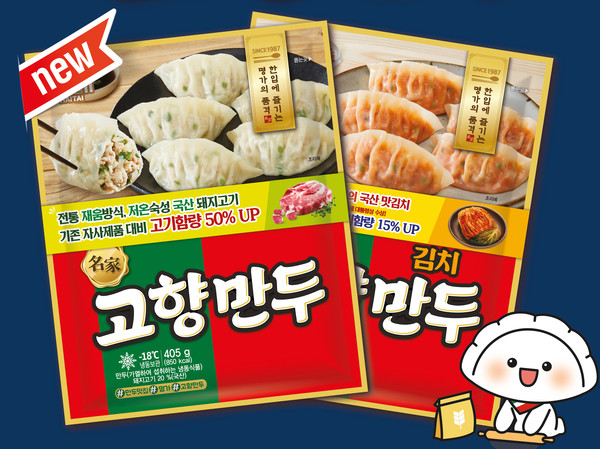 회사에 따르면 신제품 고기만두는 부드럽고 쫄깃한 만두피에 국산 최고등급 돼지고기를 채워 넣었고 김치만두는 전통 김치 명장이 담근 살짝 익은 김치로 빚었다.
