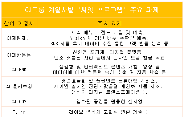 스타트업 성장의 씨앗이 되어 열매를 맺겠다는 의미의 '씨앗 프로그램'은 CJ제일제당을 비롯해 CJ대한통운, CJ ENM 등 6개 주요 계열사가 도약기(창업 3~7년)의 스타트업을 선정해 육성하는 사업이다.