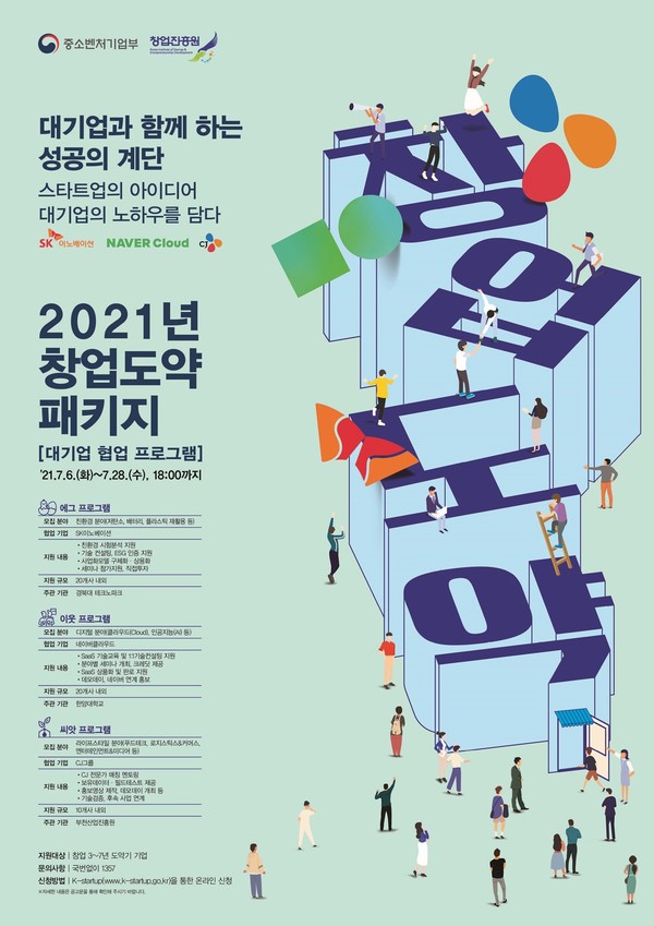 참가 신청은 이달 28일까지 창업지원포털 K-스타트업을 통해 가능하다. 세부사항은 홈페이지의 '창업도약패키지-대기업 협업 프로그램' 모집 공고를 통해 확인할 수 있다. CJ는 이달 모집 마감 후 8월 중 선발을 완료하고 9월부터 내년 3월까지 선발 기업의 사업 구체화를 지원한다. 이후 4월 데모데이를 거쳐 후속 지원에 나설 전망이다.
