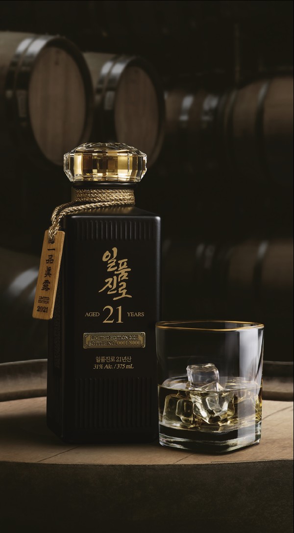 회사에 따르면 이번에 선보이는 일품진로 21년산은 풍미가 가장 뛰어난 중간층 원액만을 선별해 21년 이상 숙성한 제품으로 목통의 위치를 주기적으로 바꾸고 교체하는 등 긴 시간 동안 최적의 온도와 습도를 맞춰 탄생했다.